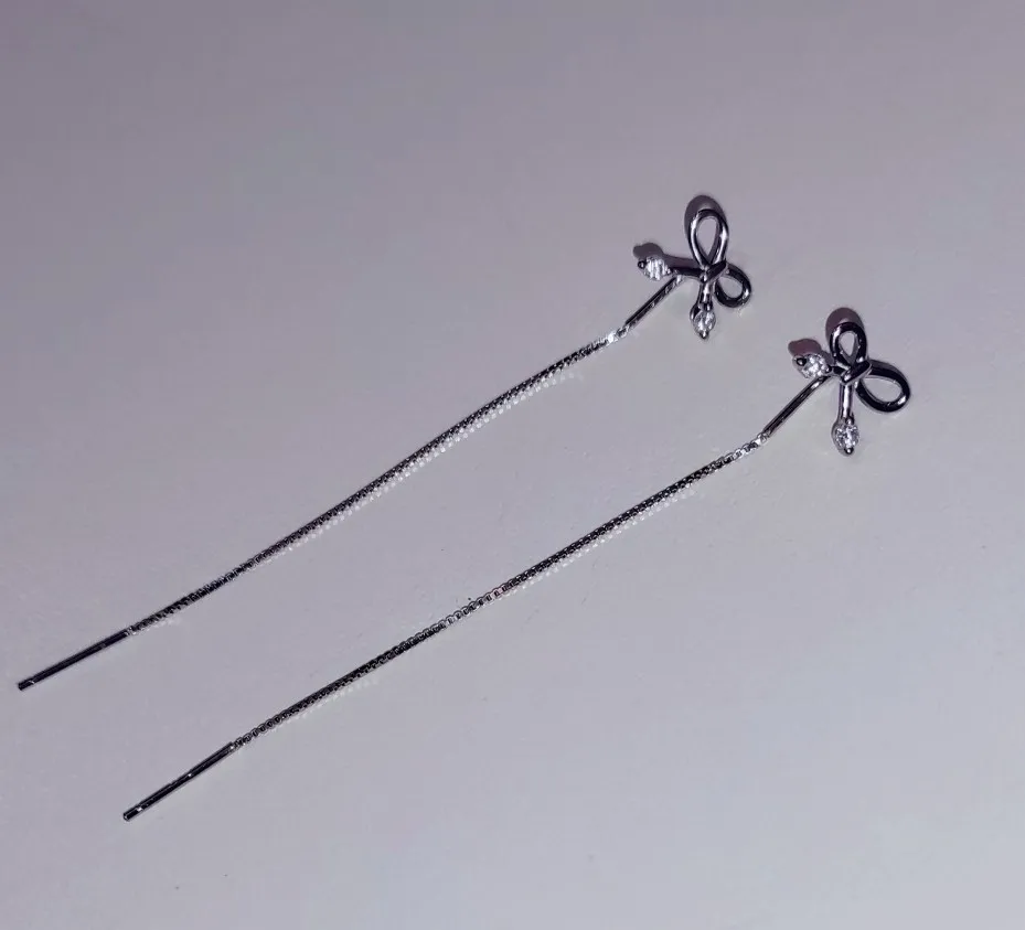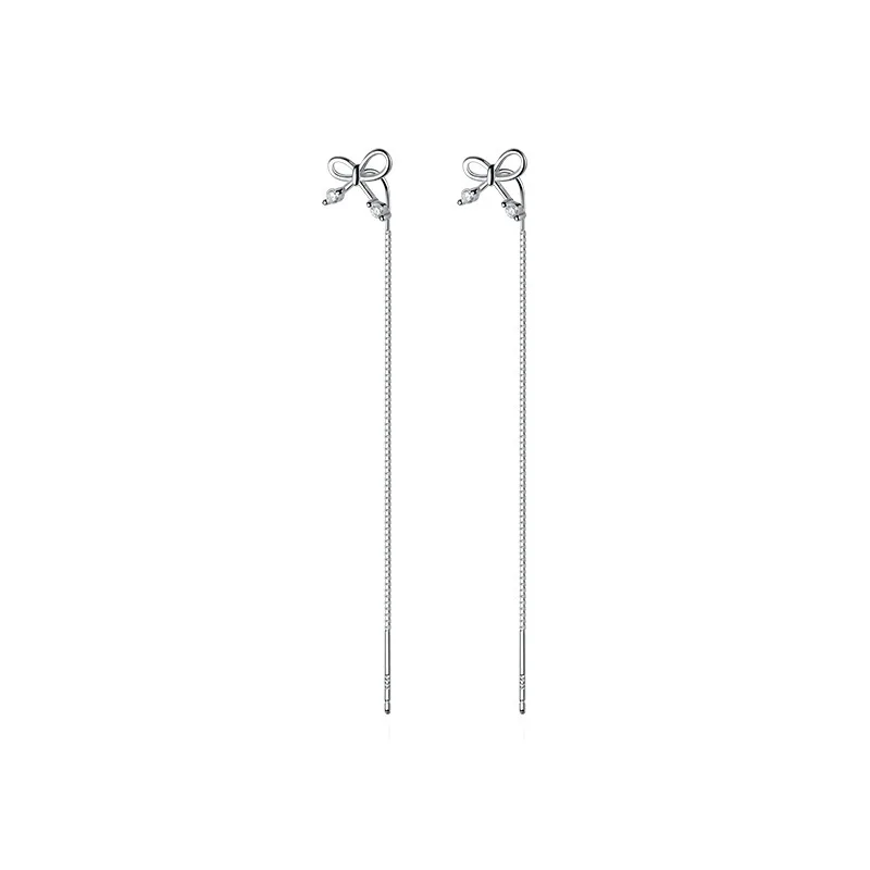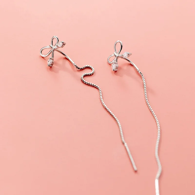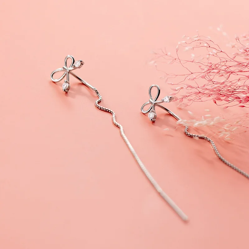 100% реальные 925 пробы серебряные серьги-банты с нити серьги длинной цепи тянуть через свисающие серьги для женщин, серьги в виде цветов; Изящные ювелирные изделия