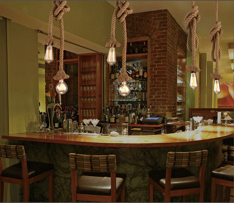 Веревочный подвесной светильник для бара, кафе, ресторана, ретро, винтажный декоративный подвесной светильник, светильник E27, светодиодные лампы «сделай сам», подвесной светильник