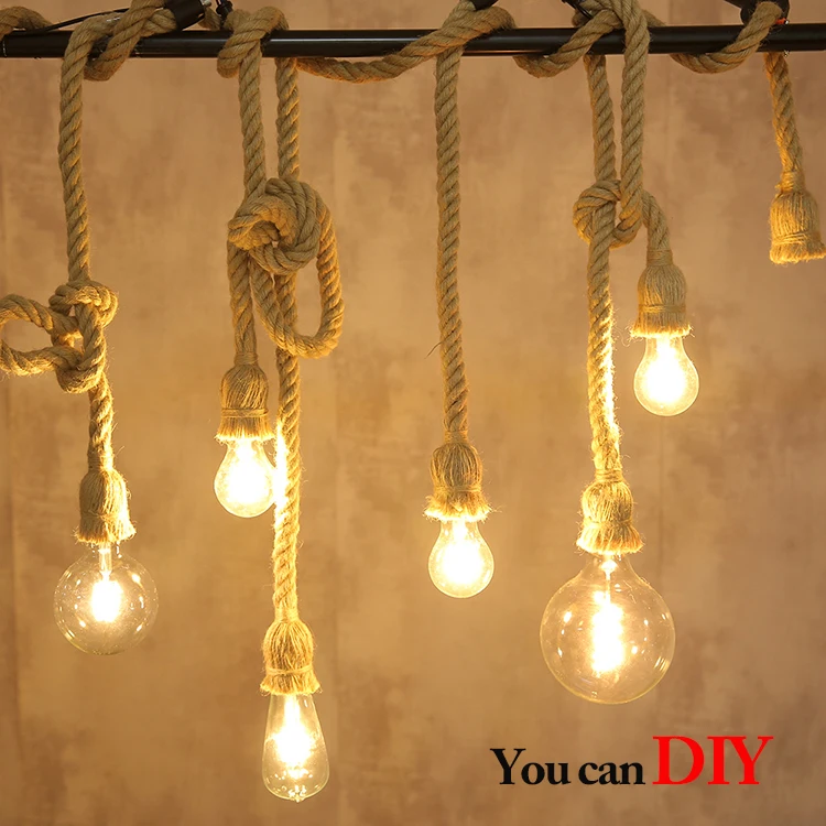 Веревка подвесной светильник Бар Кафе Ресторан Ретро Винтаж декоративный подвесной светильник Светильник E27 светодиодные лампы DIY подвесной светильник