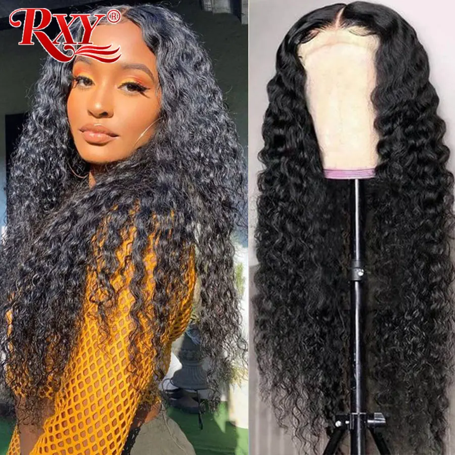 Бразильские волосы Rxy с глубокой волной, парики для женщин, человеческие волосы без клея, парик с застежкой 4x4, вьющиеся волосы, парик с предварительно выщипанными волосами