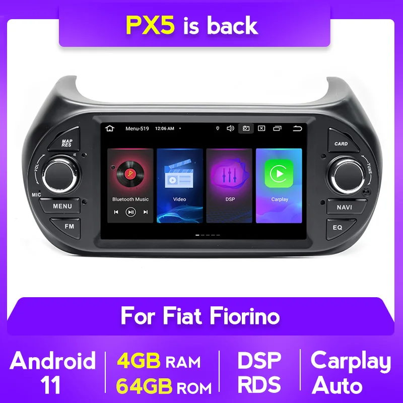 Автомобильный DVD-плеер, мультимедийная система на Android 11, с 7 "экраном, DSP 4 Гб 64 ГБ, GPS, стерео, для FIAT Fiorino Qubo Citroen Nemo Peugeot Bipper