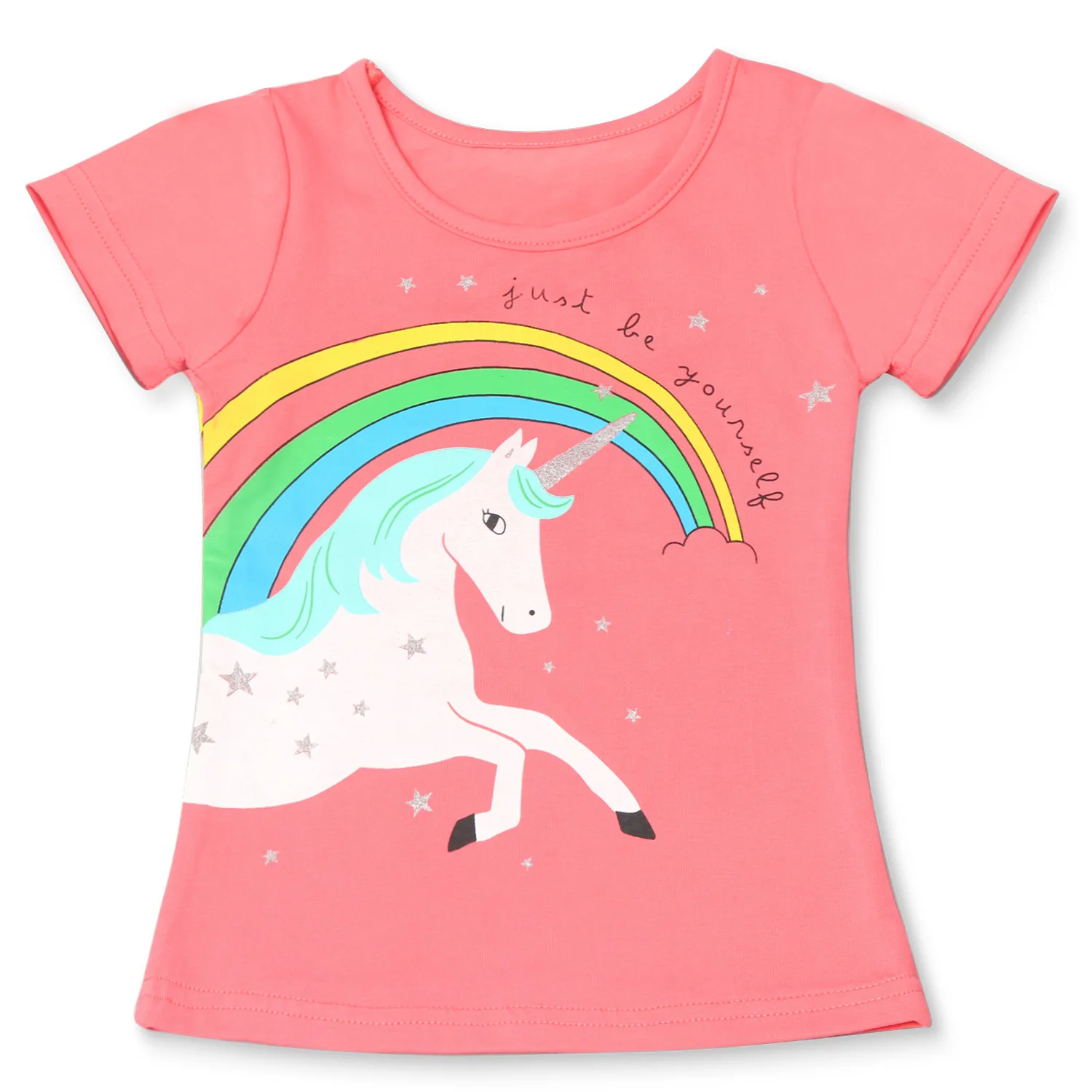Новинка; Детская одежда; Одежда для дня рождения; Футболка с мультяшным принтом единорога для девочек; Футболка для девочек От 3 до 8 лет