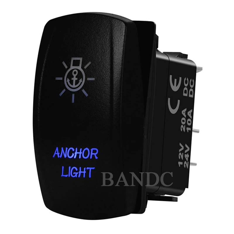 Характеристика: 5 контактов ВКЛ-ВЫКЛ SPST (однополюсный одиночный бросок) лазерный клавишный переключатель с двойным встроеннымСинийСветодиодные фонари, номинальный ток-20 ампер/12 В-10 ампер/24 В постоянного тока.