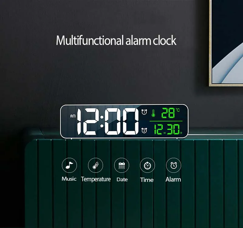 Цифровой светодиодный Будильник, длинные электронные часы с отображением даты и температуры, для украшения дома и стола