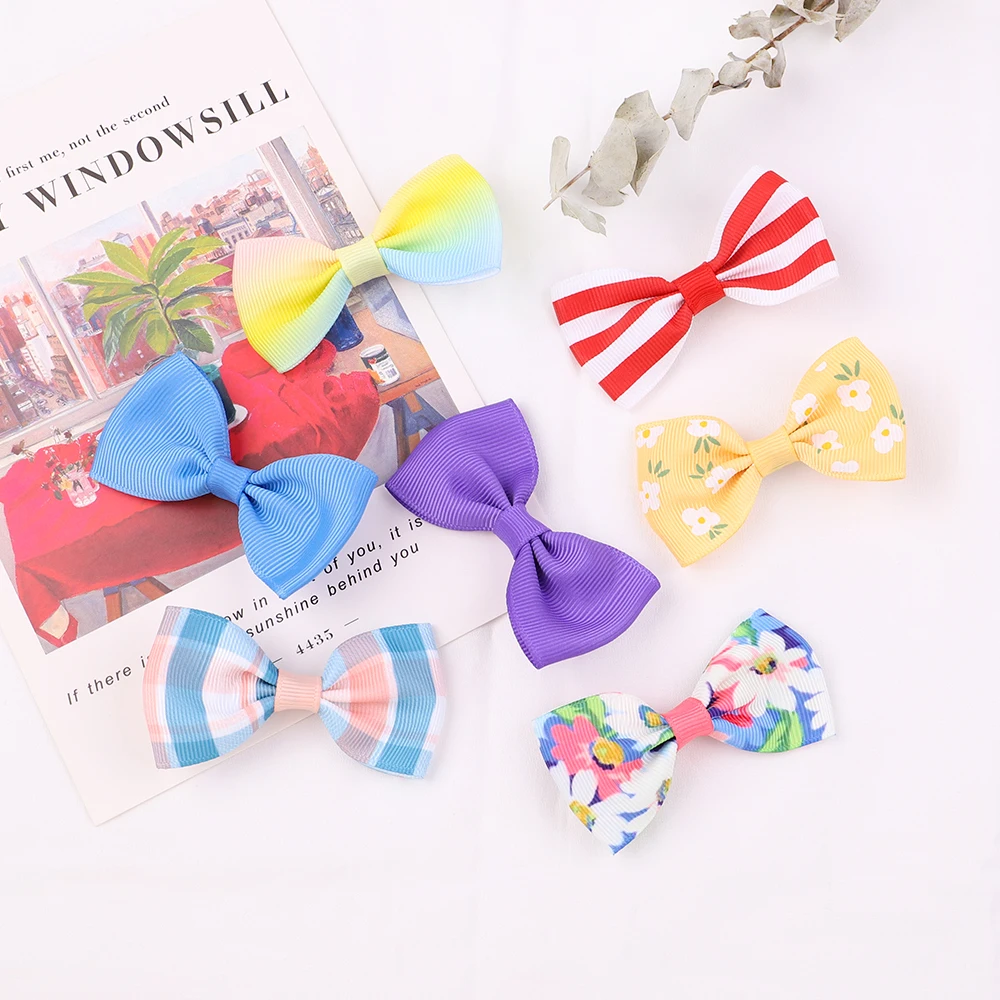 1 шт., 18 цветов, лента для волос с принтом в виде банта, заколки для волос для милых девочек, мини заколки для волос ручной работы, аксессуары для волос для детей