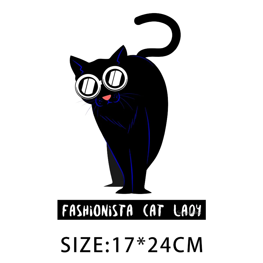 Черные кошки Цветы DIY Аппликации Наклейки на одежду аксессуары для одежды термоклейкие Патчи ПВХ Патчи