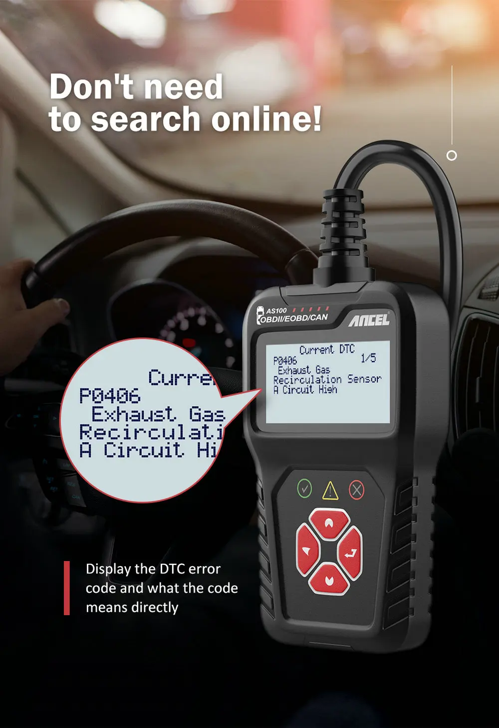 Автомобильный сканер Ancel AS100, считыватель кодов OBD2, многоязычный АНАЛИЗАТОР ДИАГНОСТИКА двигателя EPC, инструменты для проверки, диагностический автоматический сканер