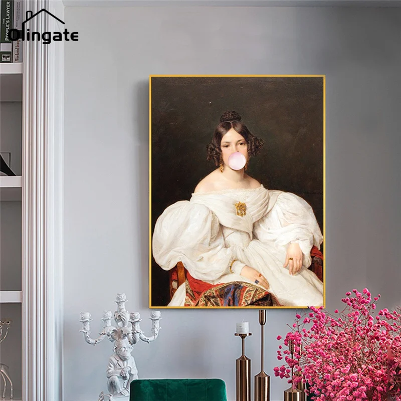 Винтажная Женская жевательная резинка, Картина на холсте, принты, Ретро портрет, Настенная картина, цельный холст, постер, украшение для дома