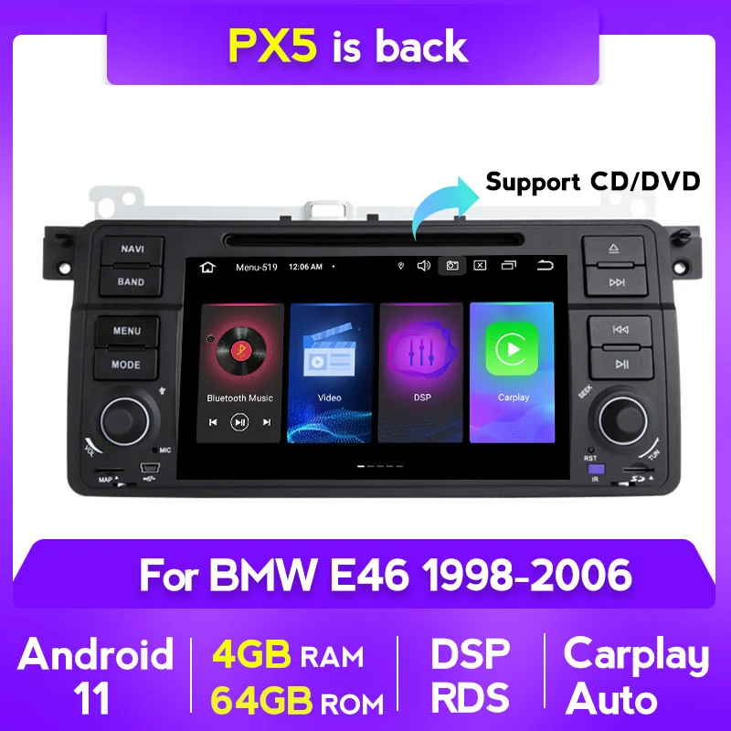 7-дюймовый 8-ядерный процессор 4 + 64 ГБ Android 11 DSP автомобильный dvd-радио плеер GPS-навигация для BMW E46 M3 318i32032533033 RDS carplay + авто