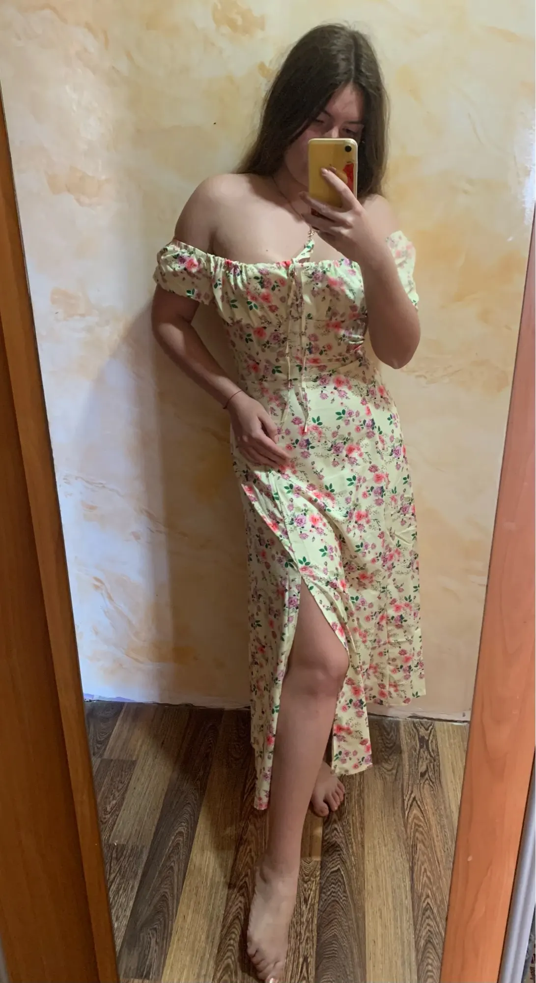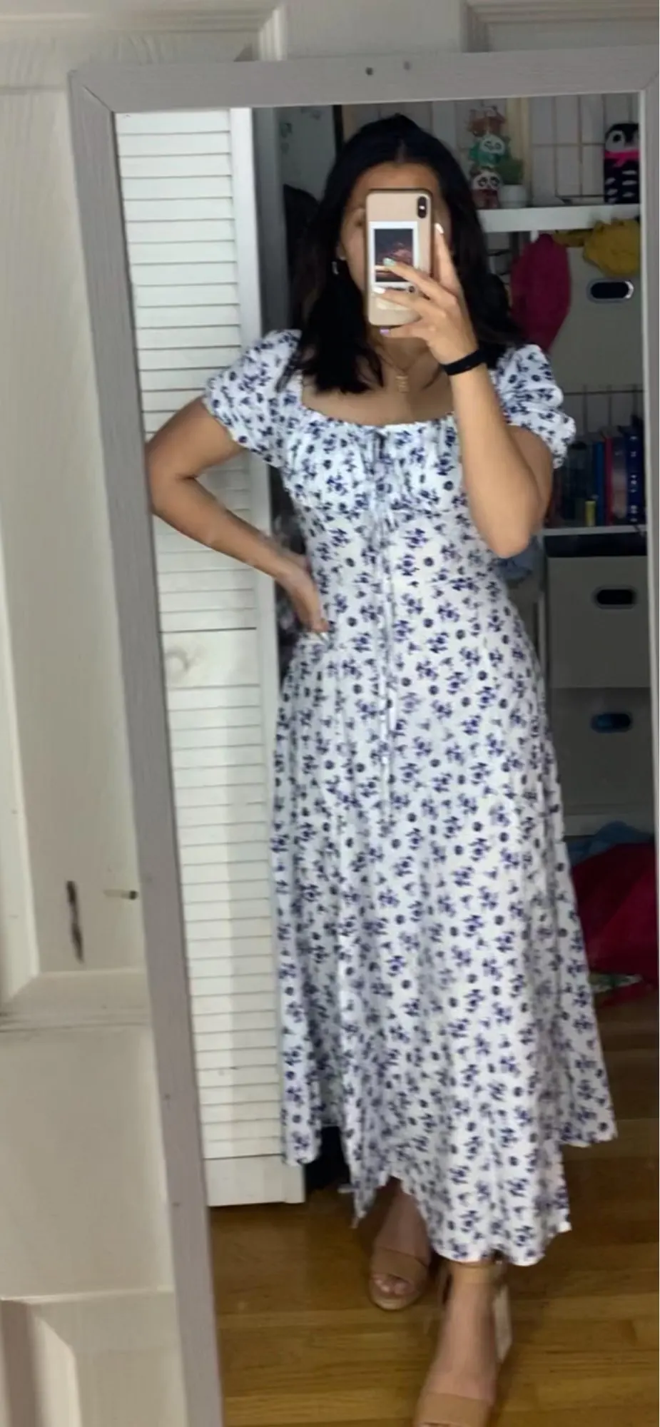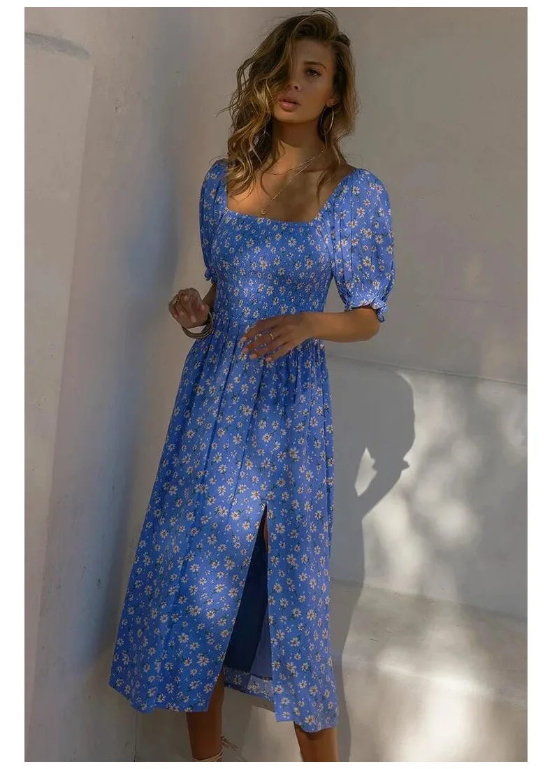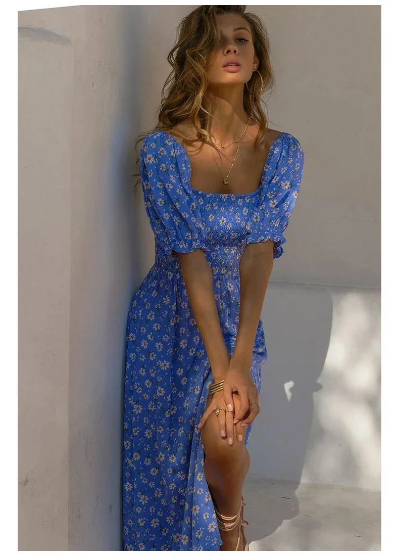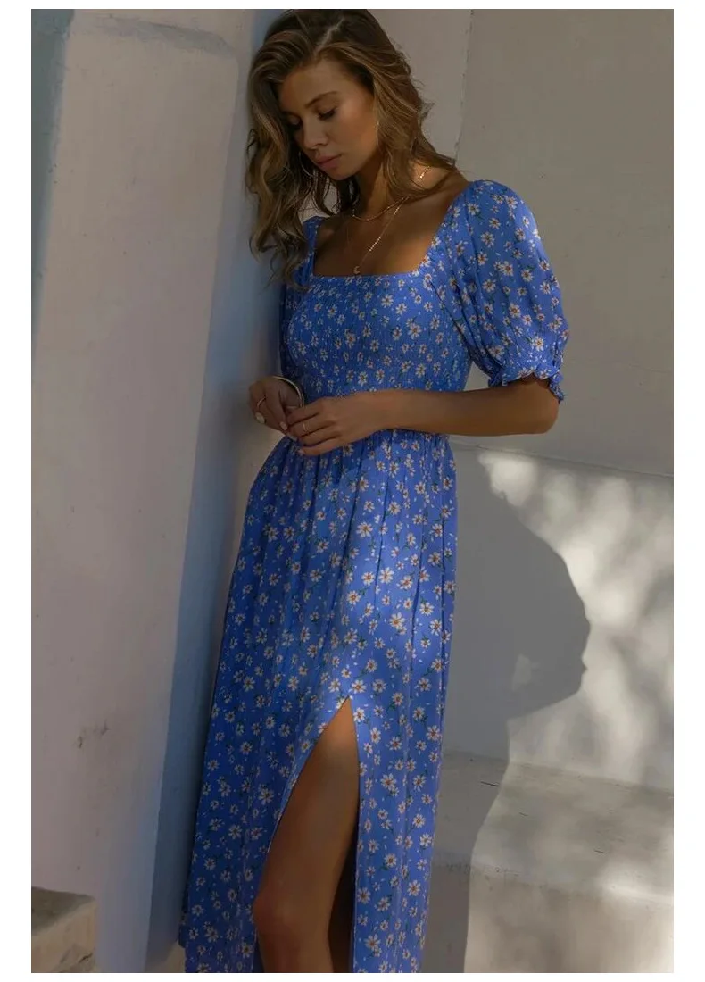 Летнее платье с пышными рукавами и цветочным принтом, элегантное со...