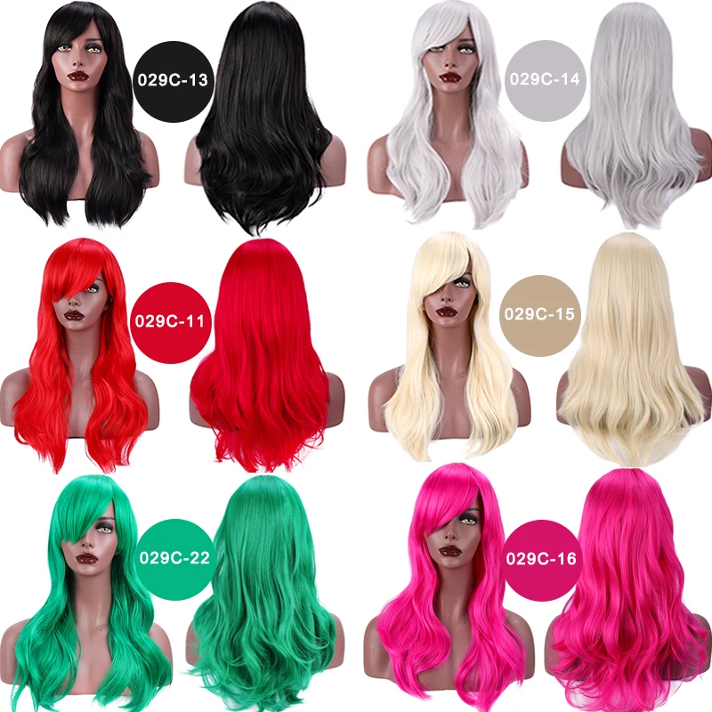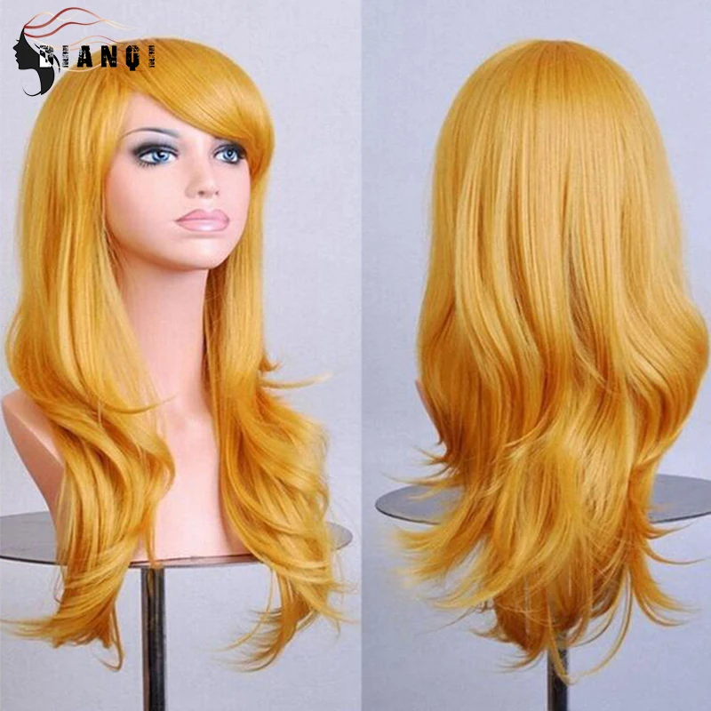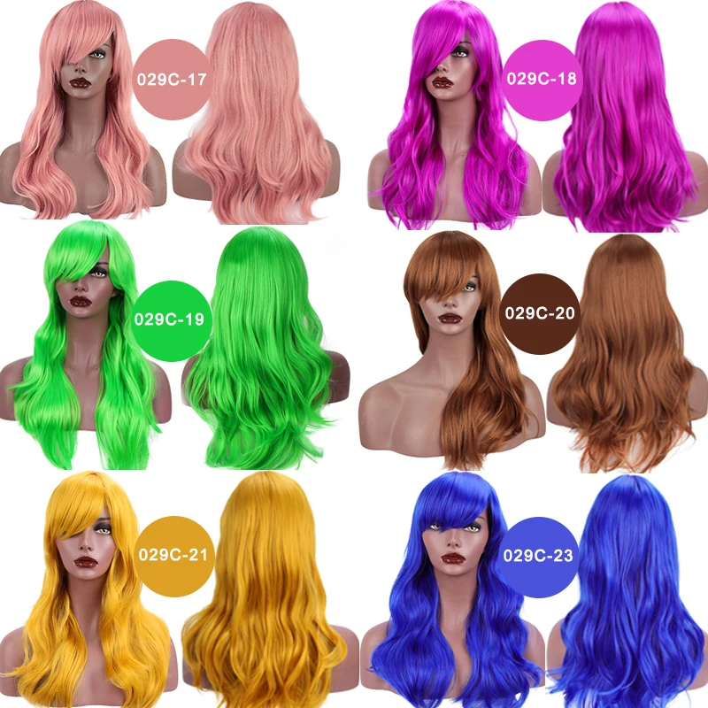 Синтетические парики DIANQI, длинные волнистые волосы с челкой, натуральные вьющиеся волосы для женщин, желтый, зеленый, синий, розовый, белый, коричневый, черный парик