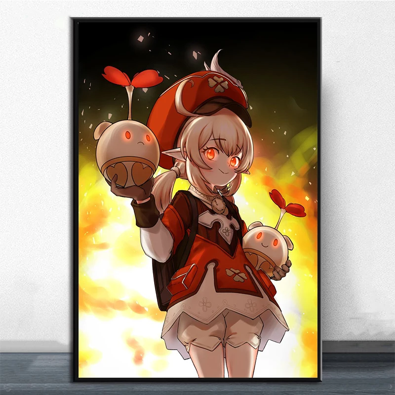 Игровые постеры WTQ Genshin Impact, Картина на холсте, ретро постер, Настенный декор, постер, настенное искусство, картина, декор комнаты, домашний декор