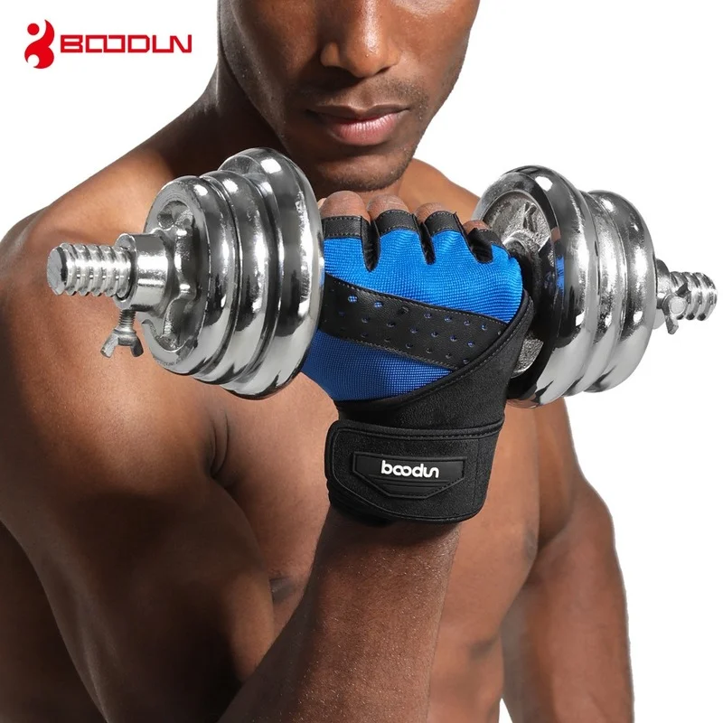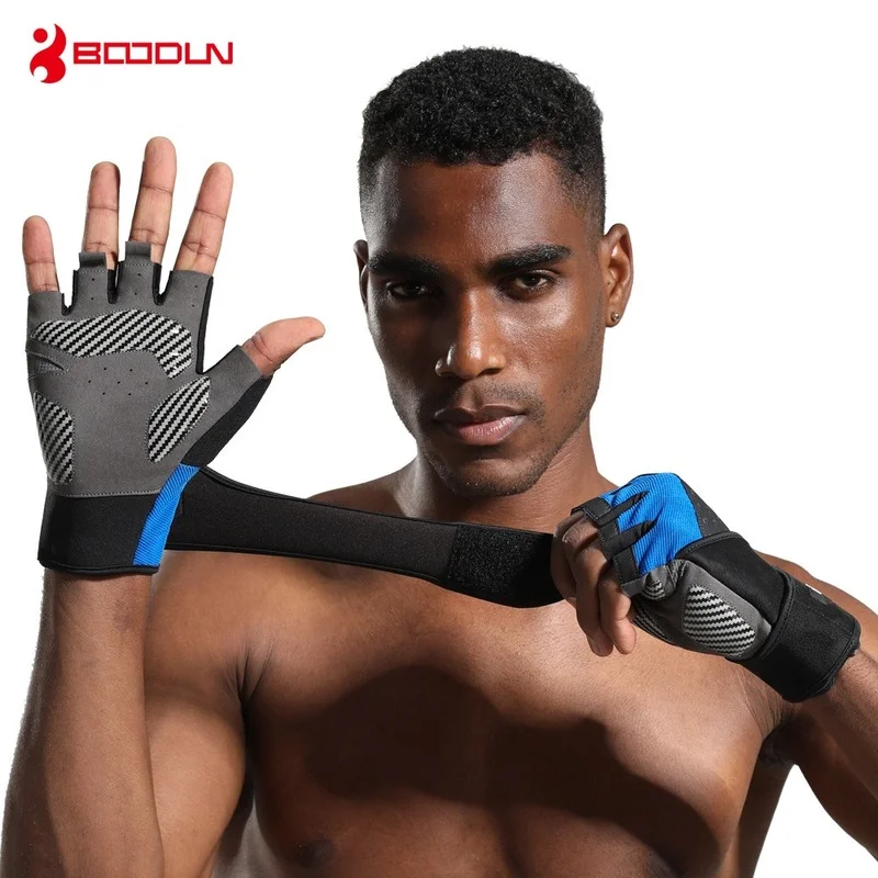 Перчатки BOODUN мужские для фитнеса, противоударные спортивные митенки с закрытыми пальцами, Нескользящие, для занятий спортом