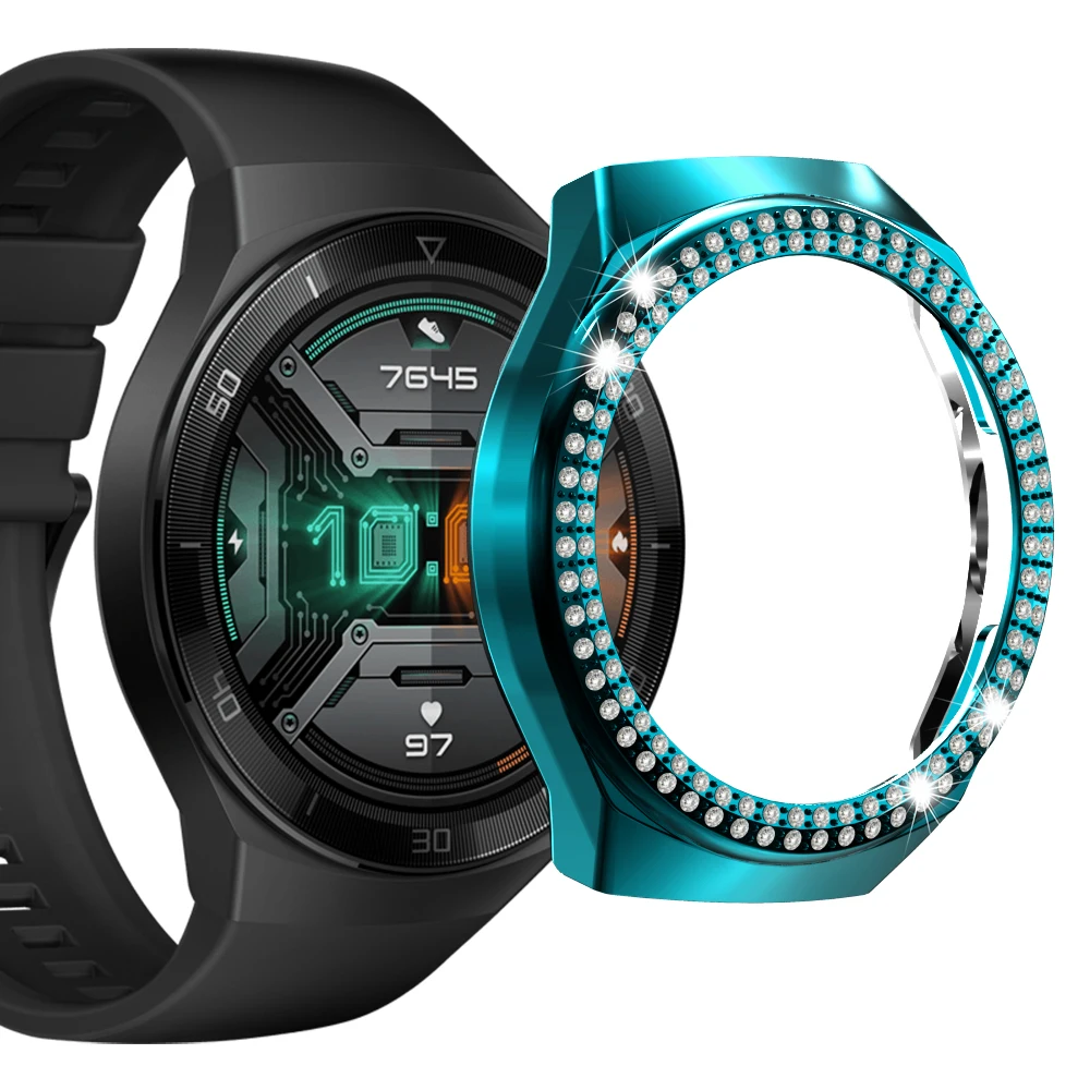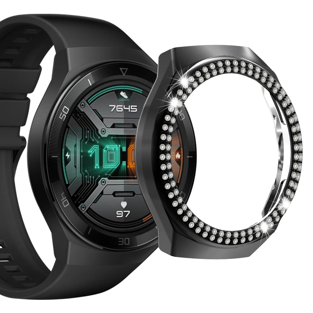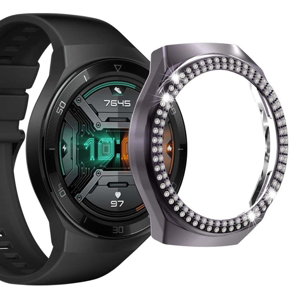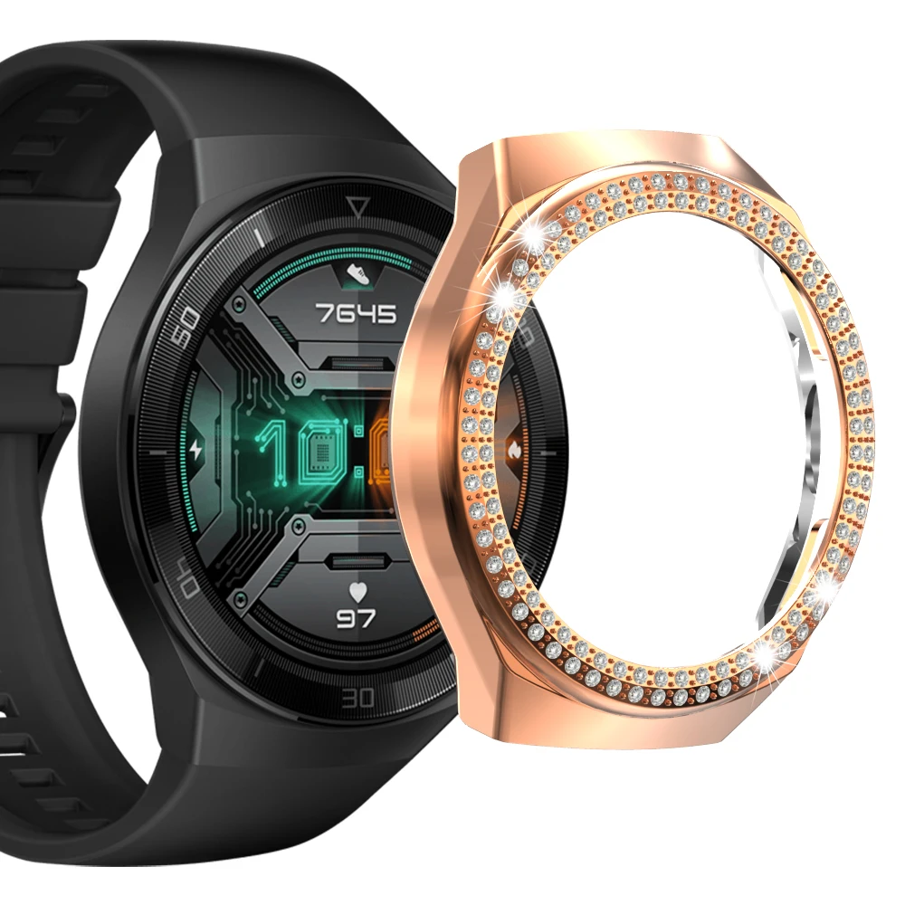 Защитный чехол из поликарбоната с двойными бриллиантами для Huawei GT 2e, защитный чехол для часов, синийсеребристыйчерныйзолотойрозовыйсерыйпрозрачный