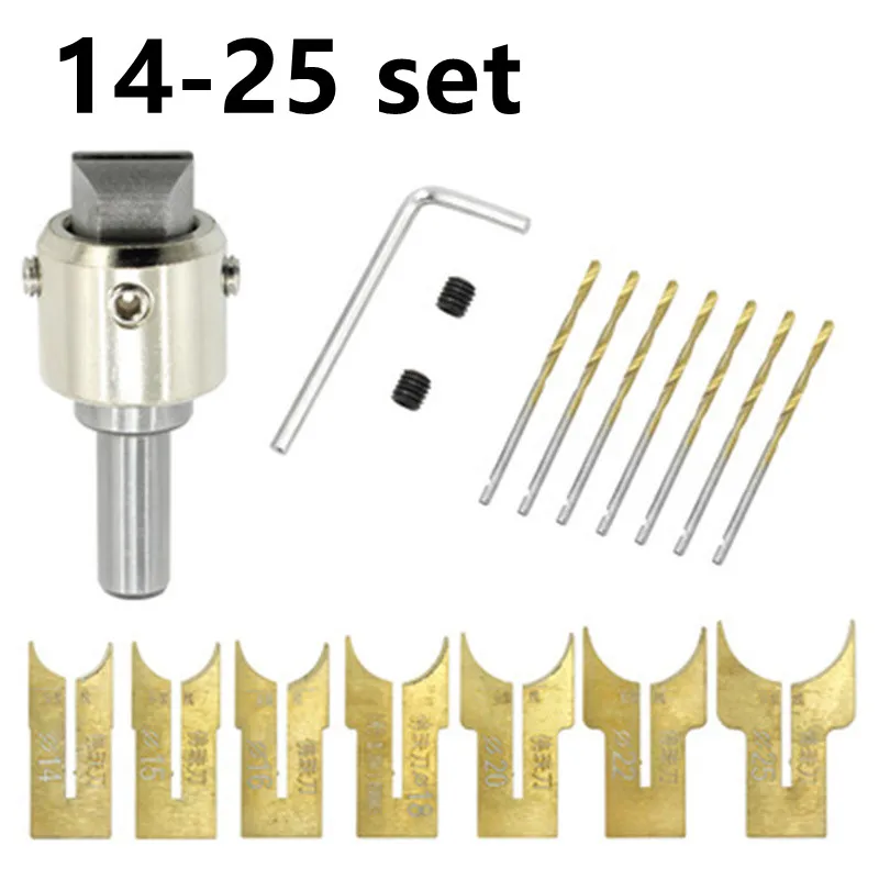 6-25 набор: 6 8 10 12 14 15 16 18 20 22 25 лезвие + 1 ручка + 11 сверл 14-25 набор: 14 15 16 18 20 22 25 лезвие + 1 ручка + 7 сверл 6-12 комплектов: 6 8 10 12 лезвий + 1 ручка + 7 сверл