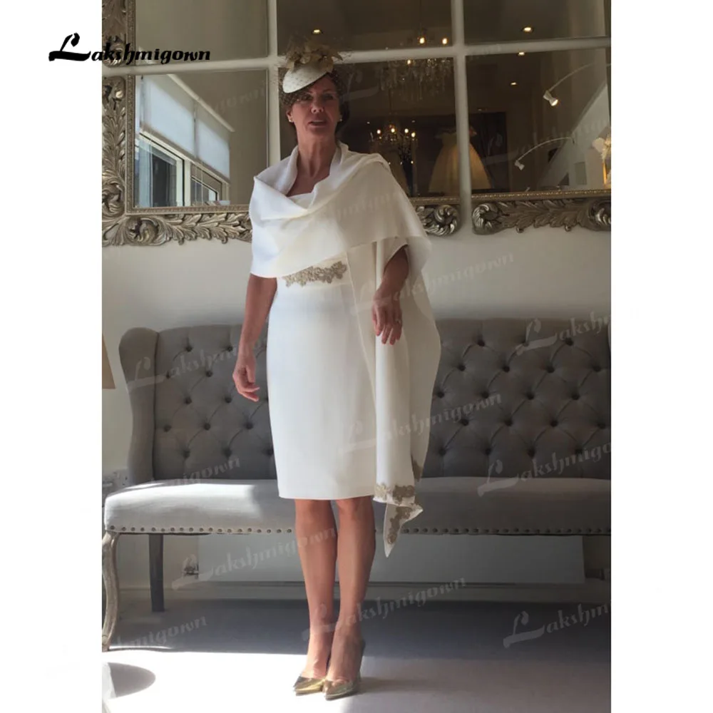 2021 простое платье для матери невесты с открытыми плечами длиной до колена со съемной шалью