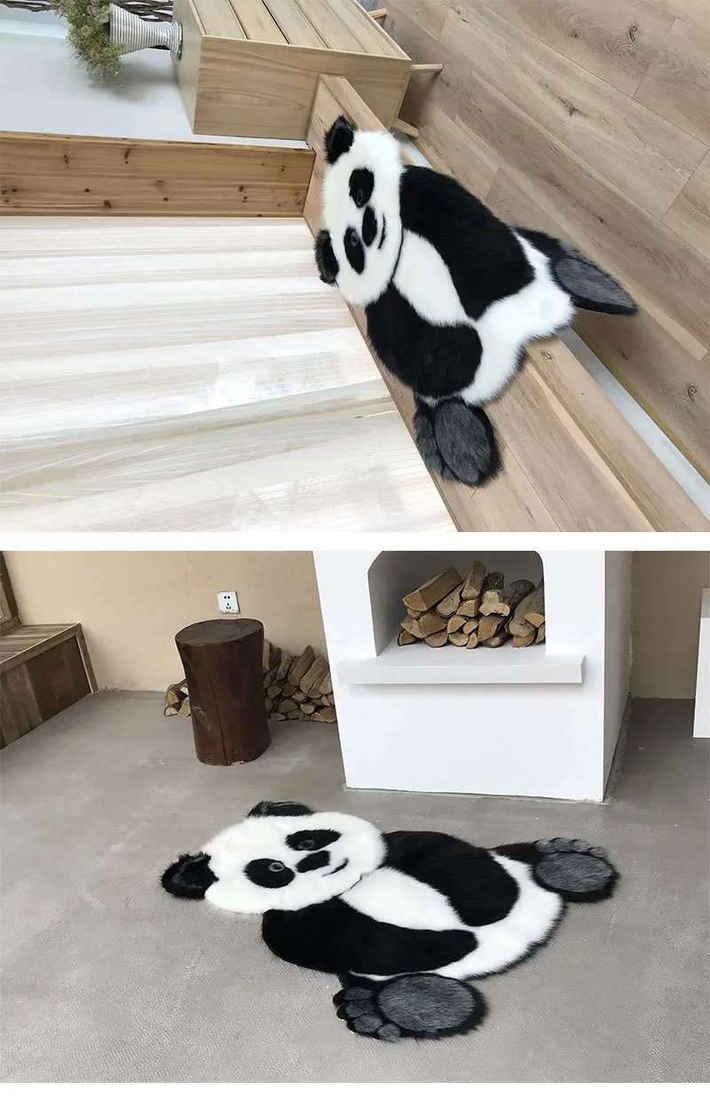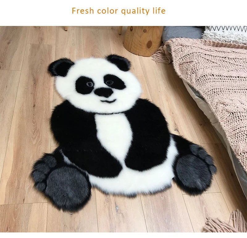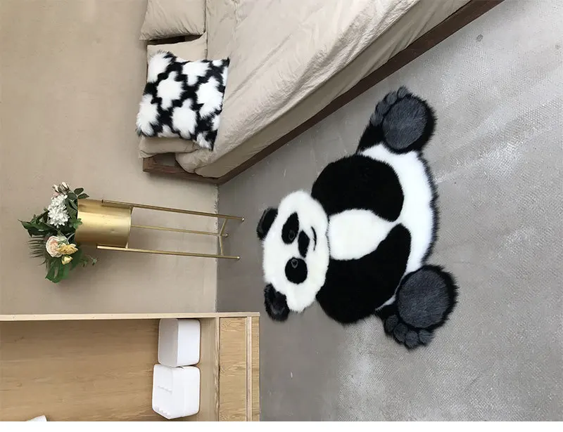 Ворсистый 3D ковер с пандой из искусственной кожи, меховой ковер в форме животного, коврик для гостиной, декоративный ковер для детской комнаты
