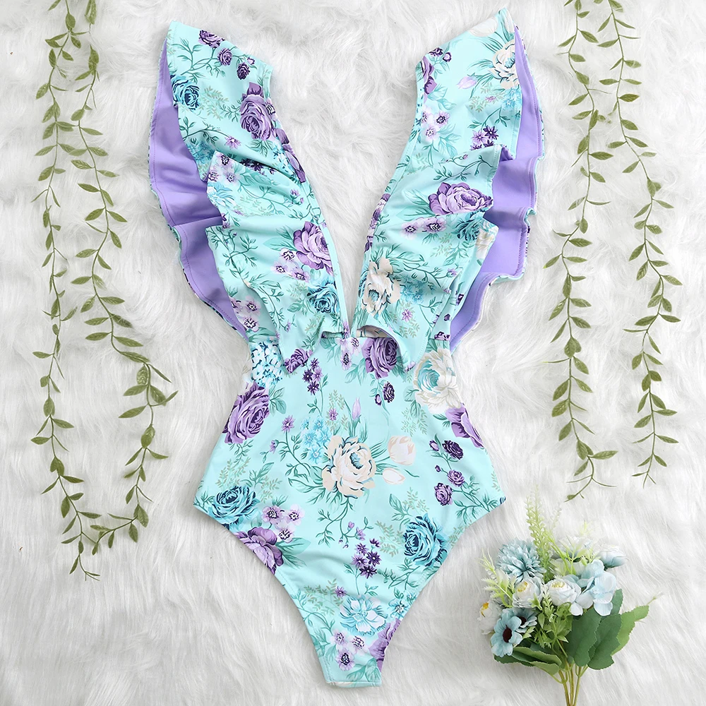 Женский слитный купальник с чашками пуш-ап, глубоким V-образным вырезом и открытой спиной