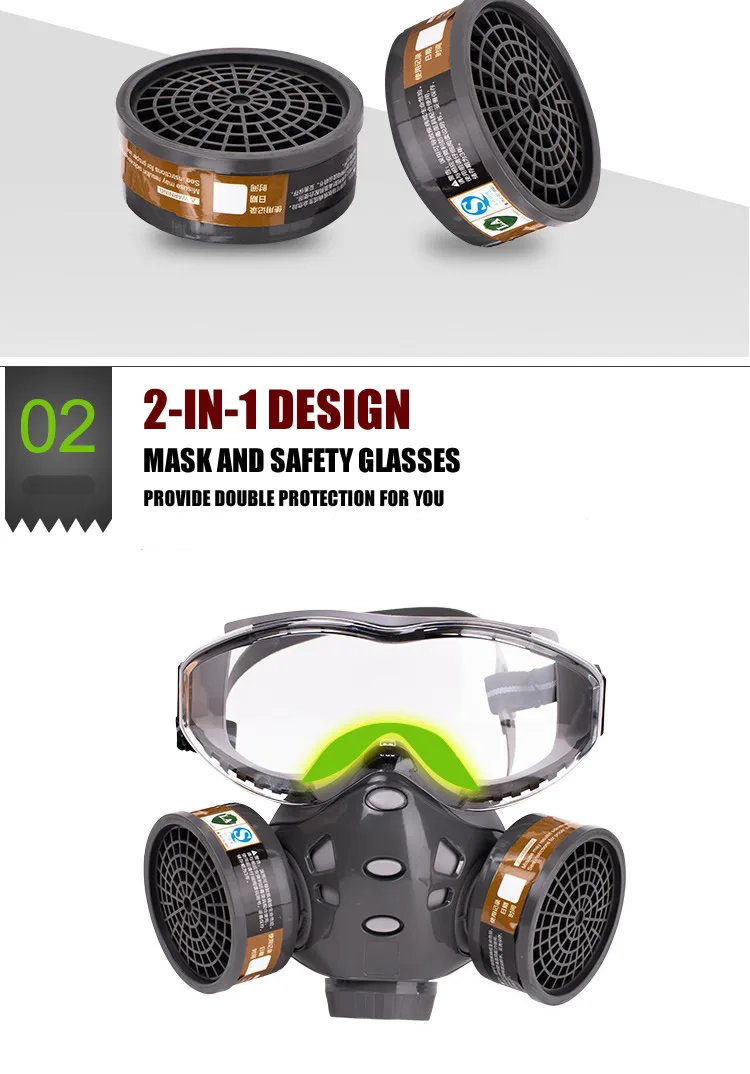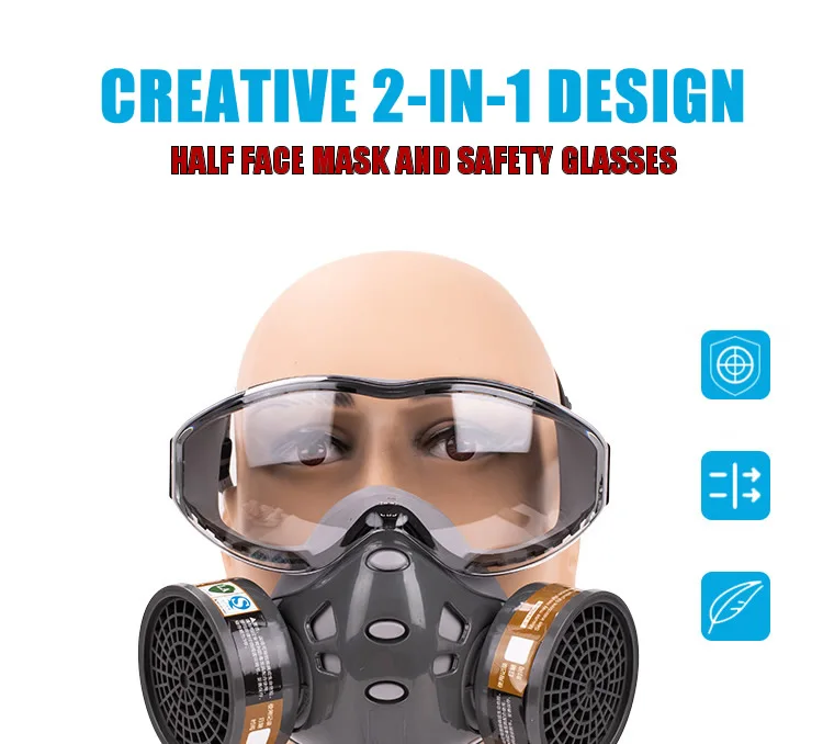 Новинка, противогаз для полного лица с защитными очками, полулицевой химический газовый респиратор для окрашивания, полировка, безопасность работы