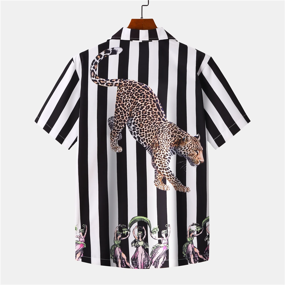 TAVARES Для мужчин Повседневное в полоску Футболки с леопардовым принтом летние шорты рукав Гавайская пляжная рубашка, свободного покроя, в стиле хиппи, готика, Харадзюку Топ