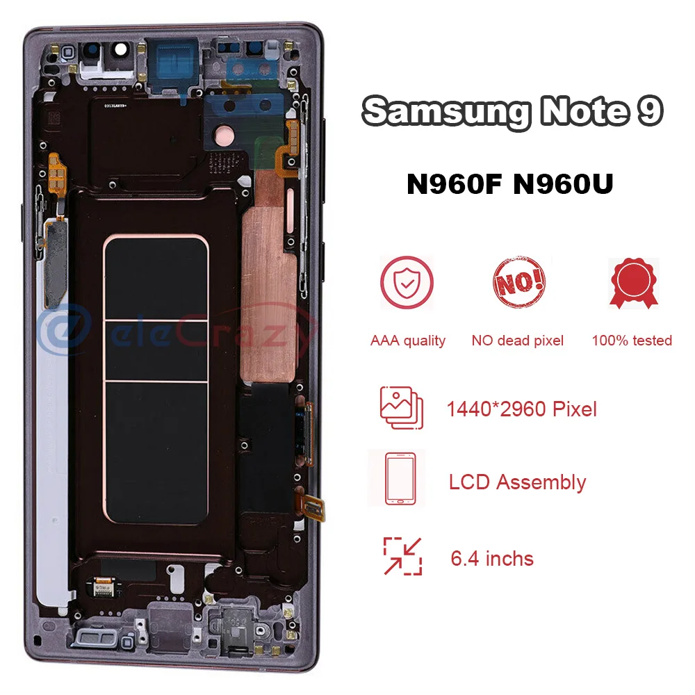 Оригинальный AMOLED-дисплей для Samsung Galaxy Note 9 N960F, ЖК-дисплей с сенсорным дигитайзером и рамкой в сборе, замена, 100% Протестировано