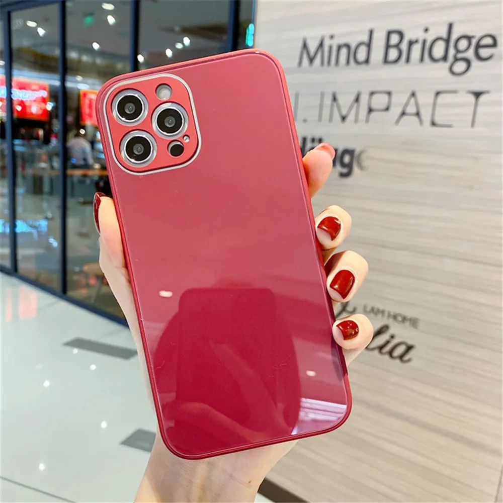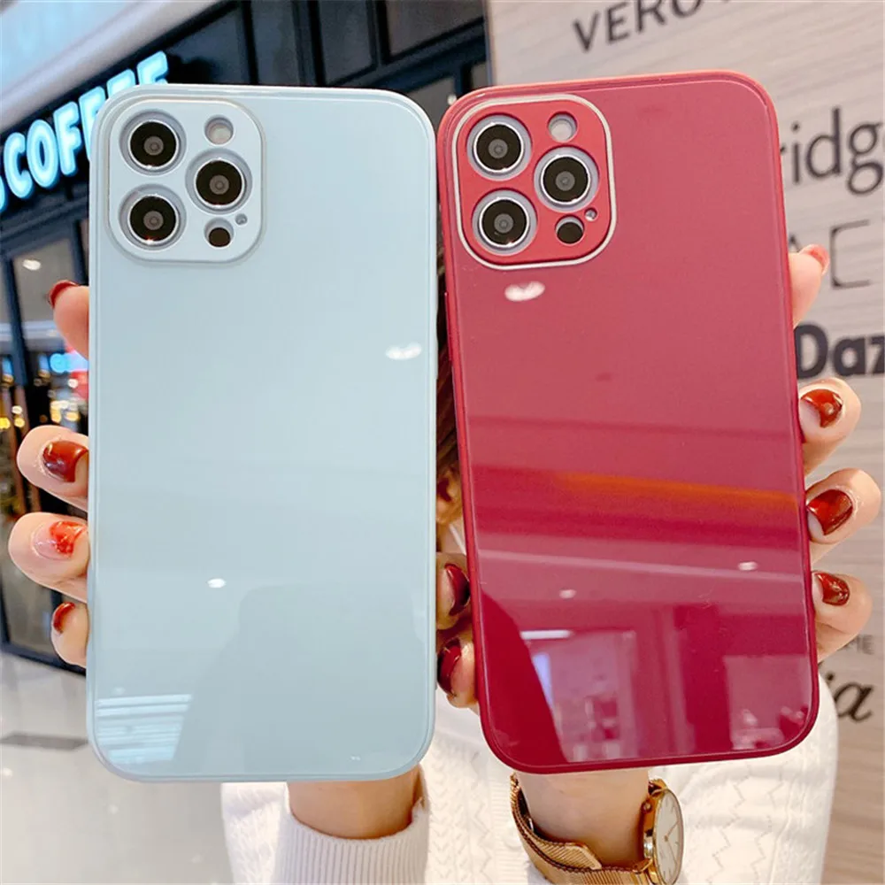 Прямоугольный чехол для телефона из закаленного стекла для iPhone 12 Mini 11 Pro Max SE 2020 X XR XS Max 8 7 Plus, жидкий силиконовый чехол ярких цветов