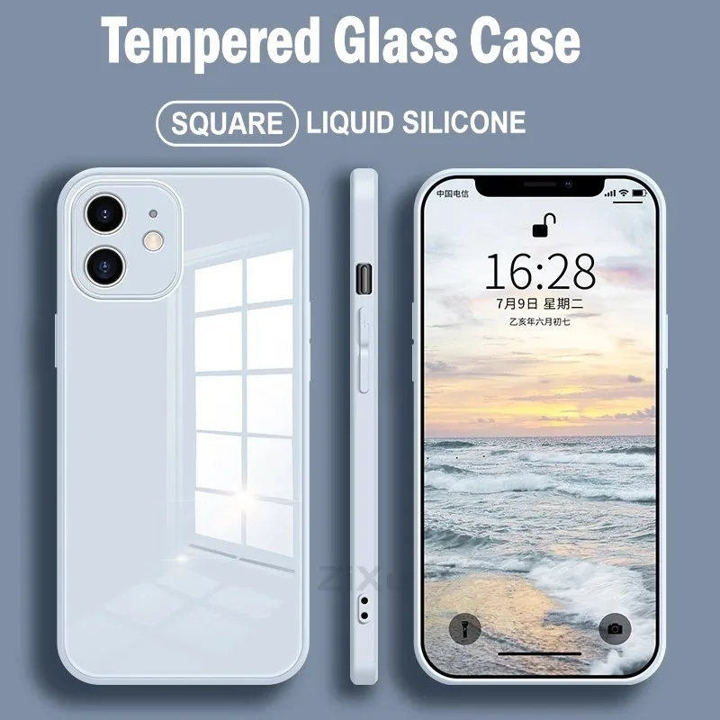 Чехол из жидкого стекла с прямыми краями для телефона iPhone 12 11 ...
