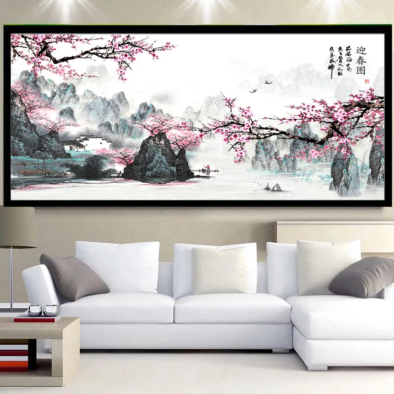Наборы для вышивки крестом Dmc в китайском стиле, с изображением цветущей сливы, 11CT, хлопковая нить