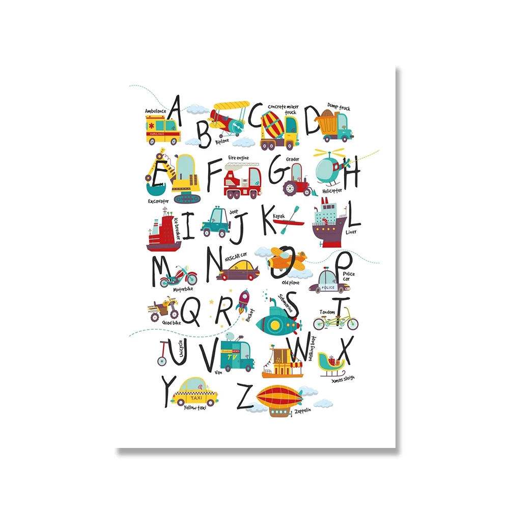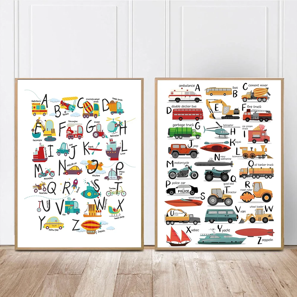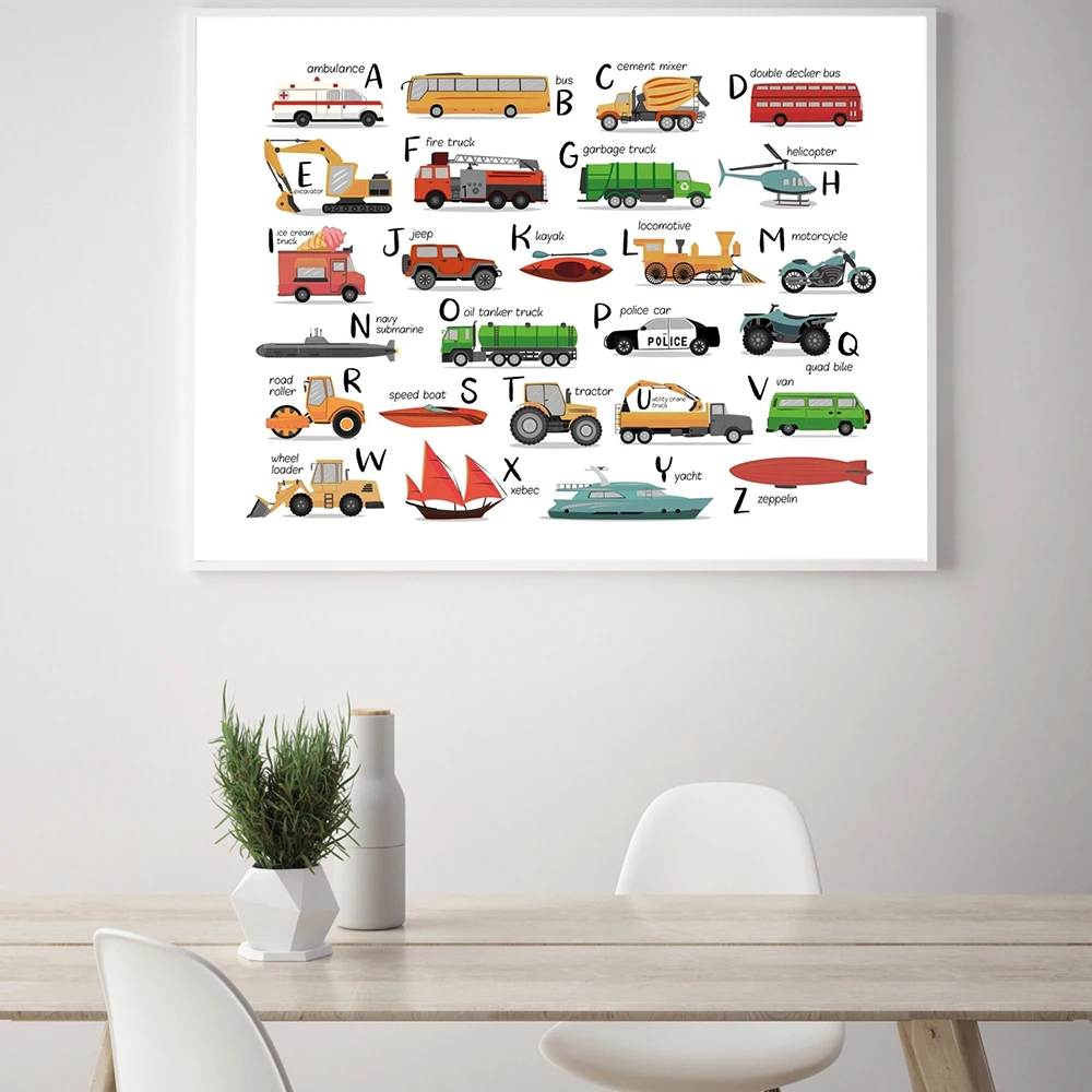 Мультяшные постеры для игрушечного транспорта, постеры с принтом дл...
