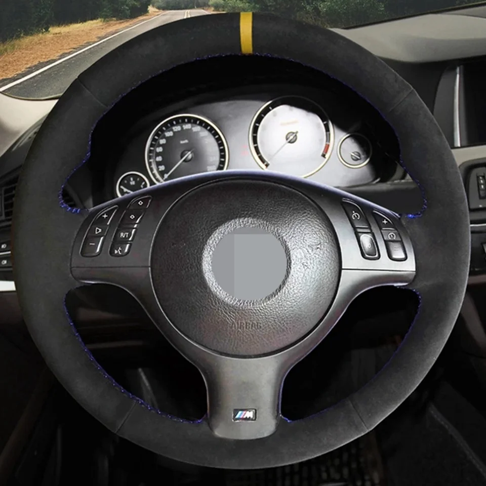 Чехол рулевого колеса автомобиля DIY Нескользящая черная замша для BMW M Sport 3 серии E46 330i 330Ci E39 540i 525i 530i M3 M5 2000-2006