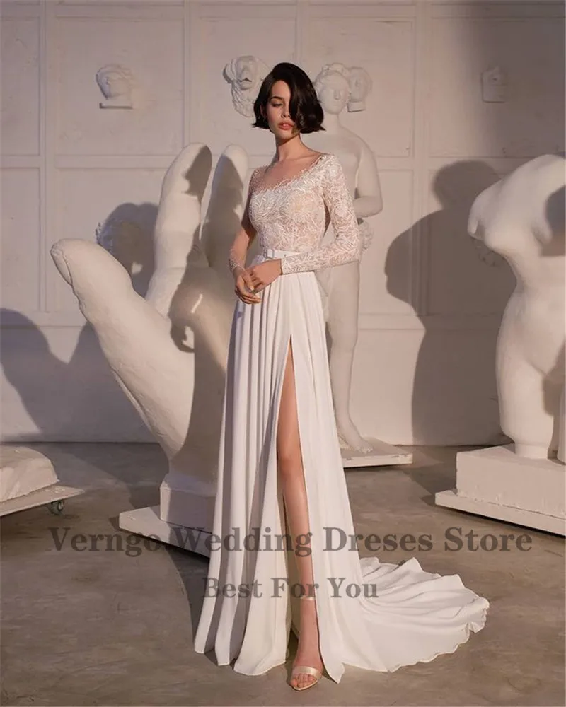 Платье Свадебное шифоновое с круглым вырезом и длинными рукавами