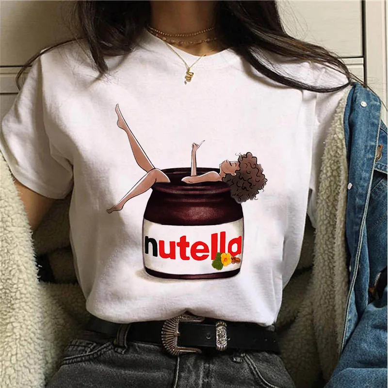Женская футболка 2022, милая забавная мультяшная Футболка с принтом Нутеллы 90-х, футболка для девочек в стиле Харадзюку, топ с коротким рукавом для женщин 3XL