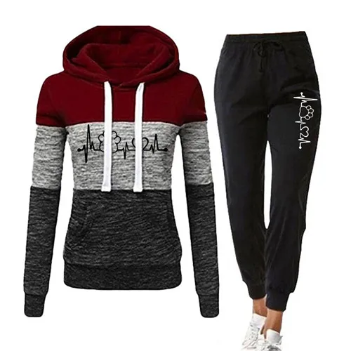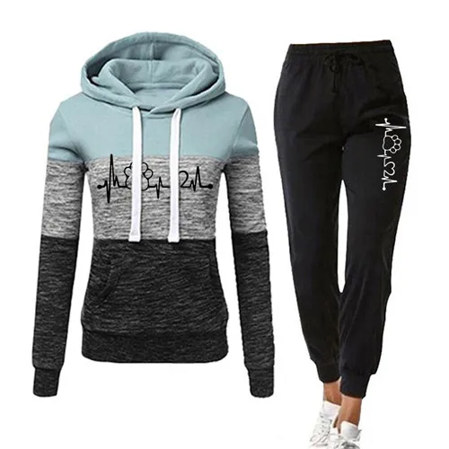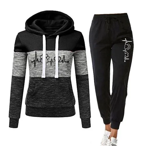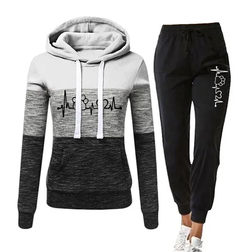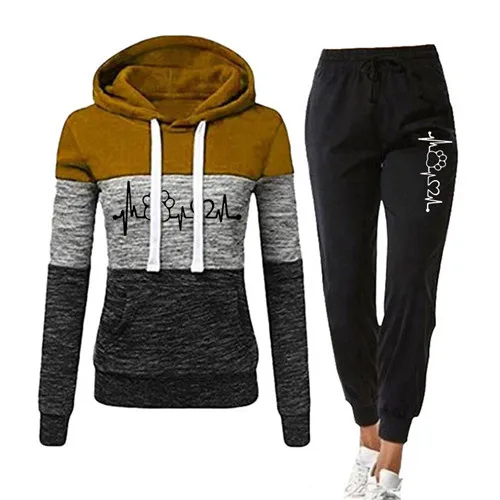 Женский спортивный костюм, повседневный комплект из двух предметов, толстовка с капюшоном и брюки, женская одежда на осень 2021