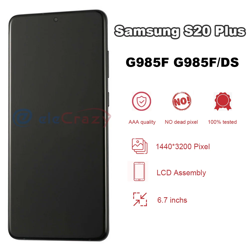 Оригинальный AMOLED для Samsung Galaxy S20 Plus G985 G986, ЖК-дисплей с сенсорным дигитайзером и рамкой в сборе, замена 100%, тест