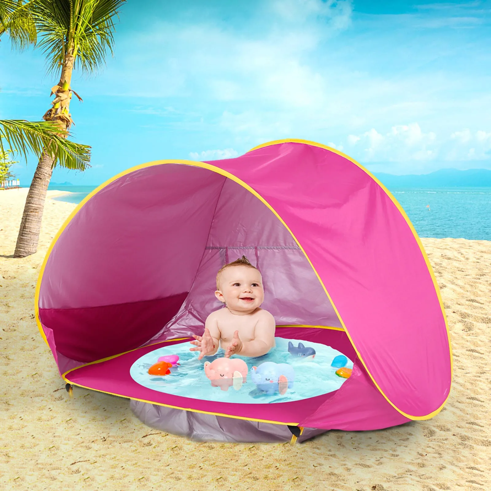 Детская Пляжная палатка, легко складывается и водонепроницаемая навес от солнца, защита от УФ излучения, навес от солнца, с бассейном QW