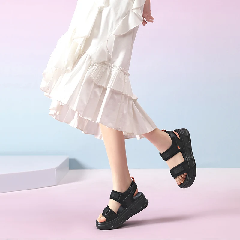 CAMELженские спортивные сандалии; Новинка 2021 года; Простые дышащие пляжные сандалии в стиле ретро на толстой нескользящей платформе; Дамская обувь на липучке