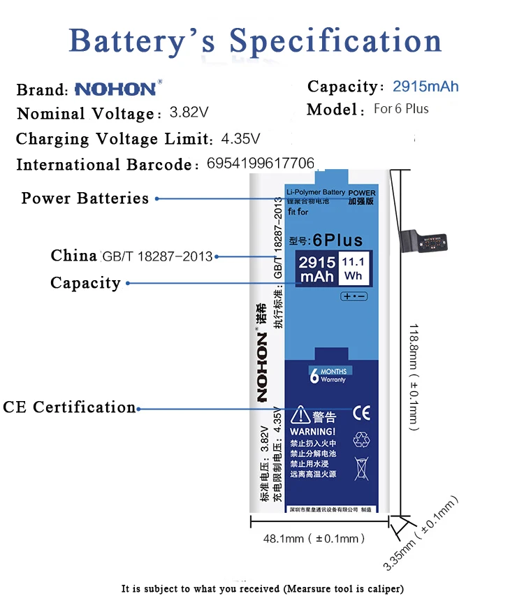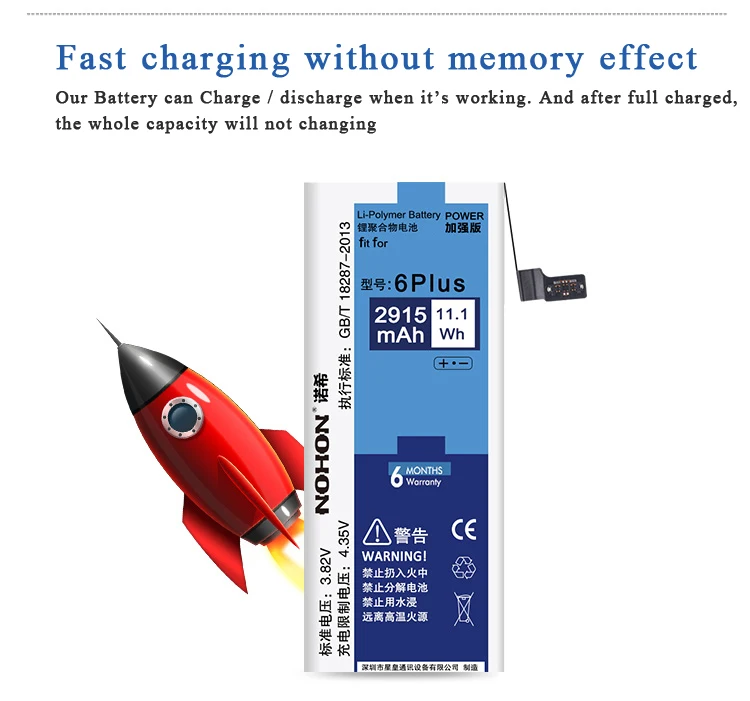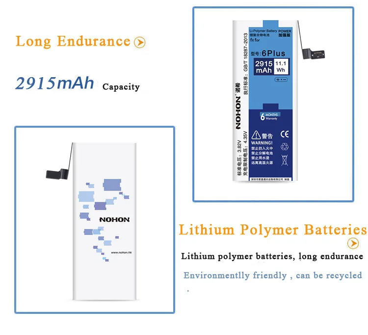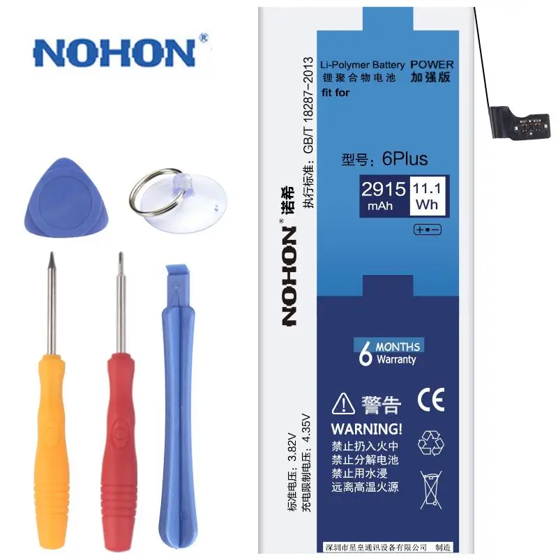 Nohon оригинальный новый аккумулятор 2915 мАч для iPhone 6 Plus 6 Plus с большой емкостью в упаковке + Бесплатные сменные инструменты для замены телефона