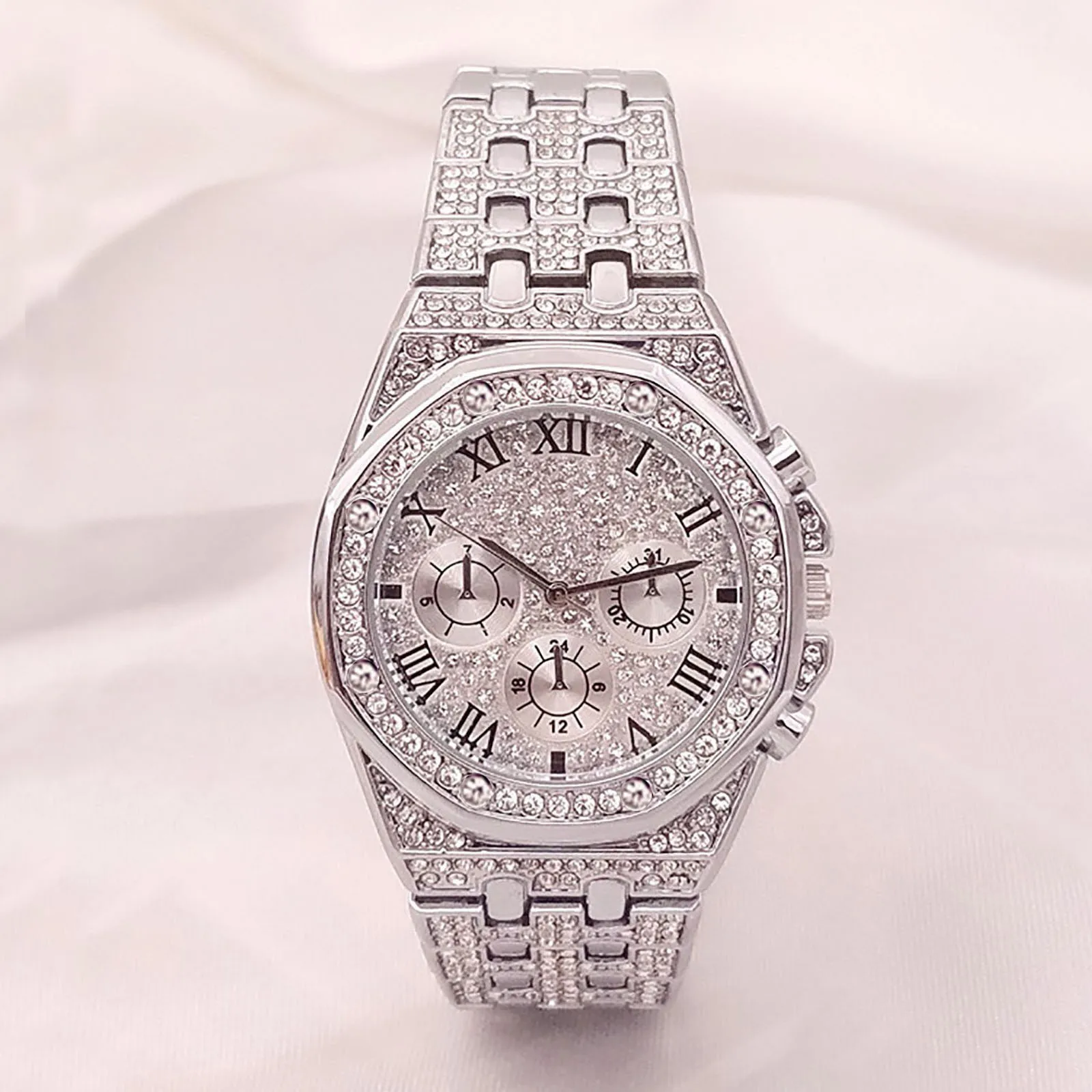Роскошные Кварцевые часы унисекс с бриллиантами и ремешком из нержавеющей стали