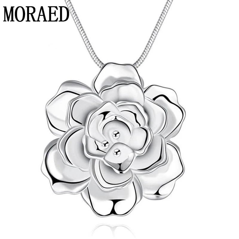 100% новый 925 стерлингового серебра элегантное модное платье с розами кулон, ожерелье для женщин, девушек, ювелирные изделия, подарок ко дню рождения