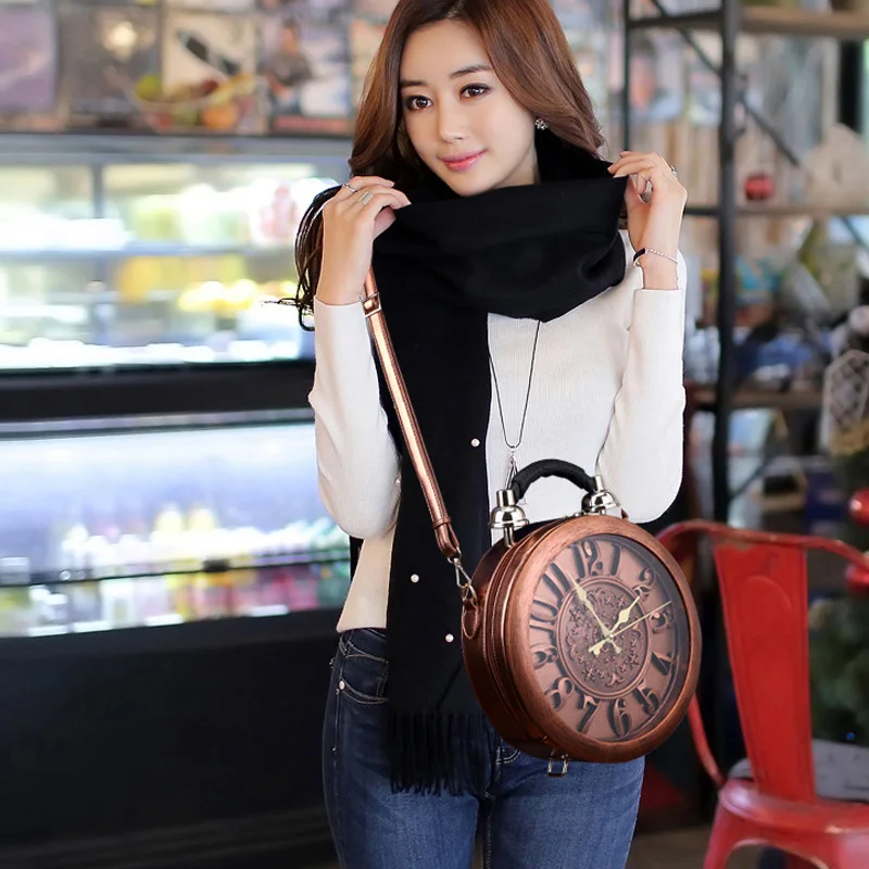 Роскошные сумочки, женские сумки, дизайнерская Модная креативная Сумка-тоут с часами, Женская круглая сумка-мессенджер из искусственной кожи, сумки на плечо