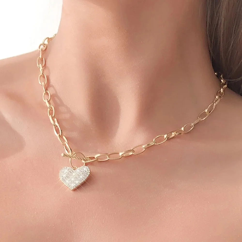 Женская цепочка с кулоном в виде сердца, золотистая цепочка с кулоном в форме сердца, Подарочная бижутерия из нержавеющей стали, 2021