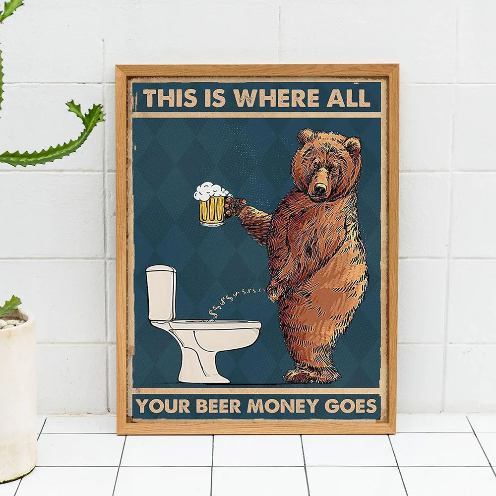 Медведь Grumpy питьевое пиво в ванную комнату Холст плакат абстрактная стена Художественная печать картина для ванной туалета стена домашний декор