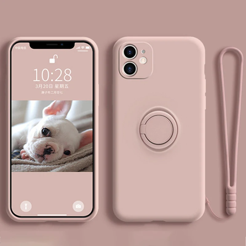 Чехол с кольцом из жидкого силикона для iPhone 12 11 Pro XS Max X X...
