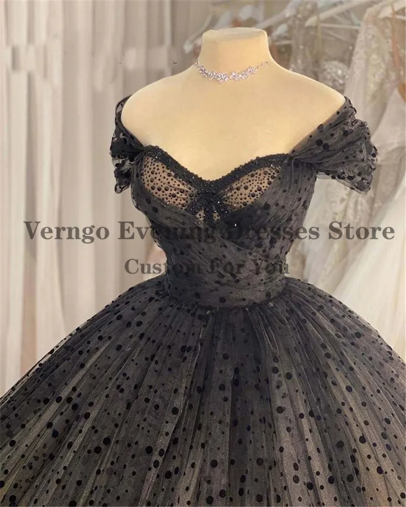 Винтажное черное Тюлевое платье Verngo для выпускного вечера, пышная юбка в горошек с короткими рукавами и бусинами, вечернее платье до щиколотки, 2021