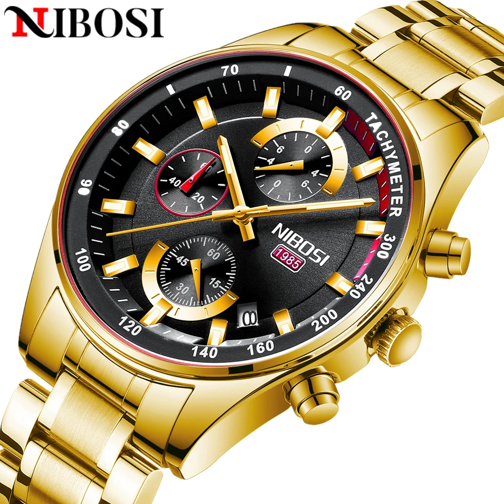 Мужские кварцевые часы NIBOSI, водонепроницаемые золотые наручные ч...