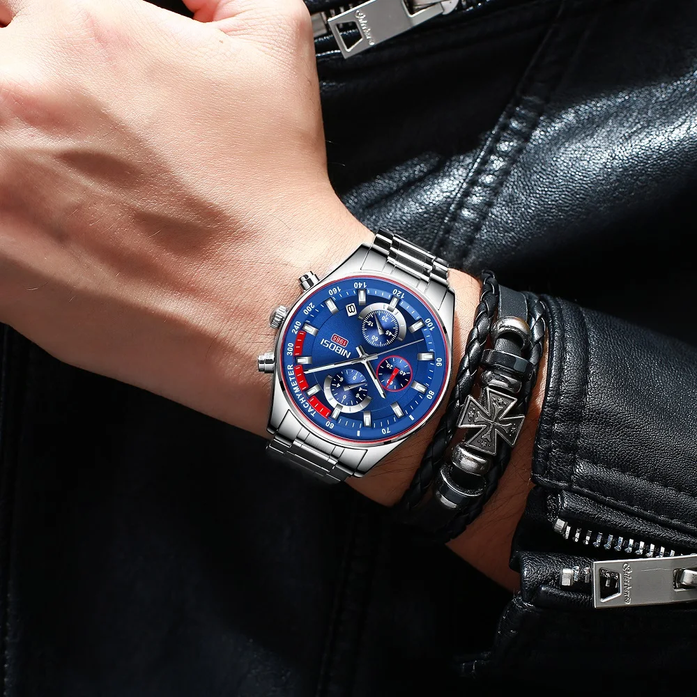 Часы наручные NIBOSI мужские из нержавеющей стали, роскошные брендо...