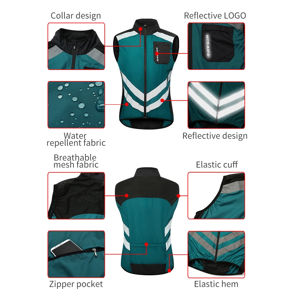 WOSAWE велосипедный жилет, ветрозащитная велосипедная куртка, Мужская короткая ветрозащитная велосипедная куртка, видимая светильник жилет, жилет для горного и шоссейного велосипеда