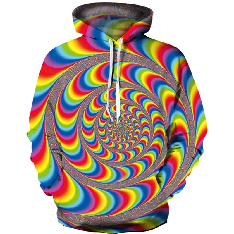 Поп панк в стиле хип-хоп головокружение искусств 3D Толстовка для женщинмужские пуловеры толстовки Верхняя одежда свободные топы психоделические вихревой одежда