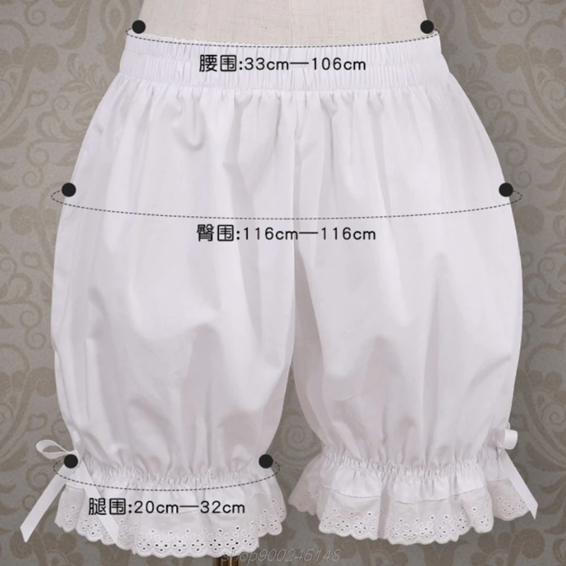 Шаровары винтажные в викторианском стиле, однотонные шаровары в готическом стиле, с эластичной талией, оборками и кружевным подолом, свободные шорты в стиле "Лолитагорничная", M25, 21
