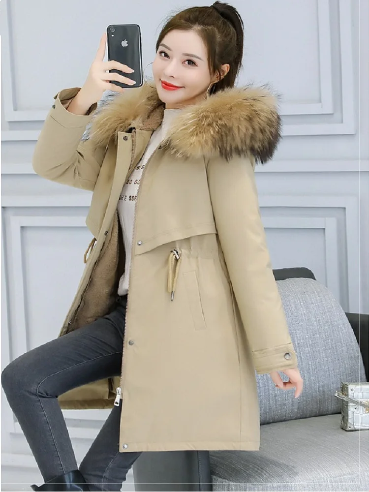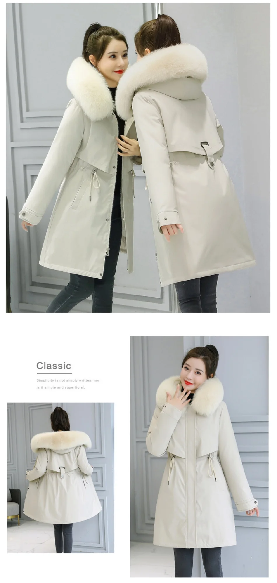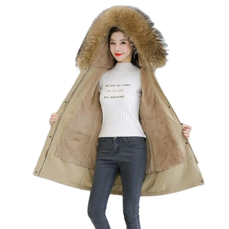 Модные женские зимние пальто средней длины с капюшоном, новинка 2021, парка больших размеров, из овечьей шерсти, свободный пуховик из хлопка, Женская куртка Pie